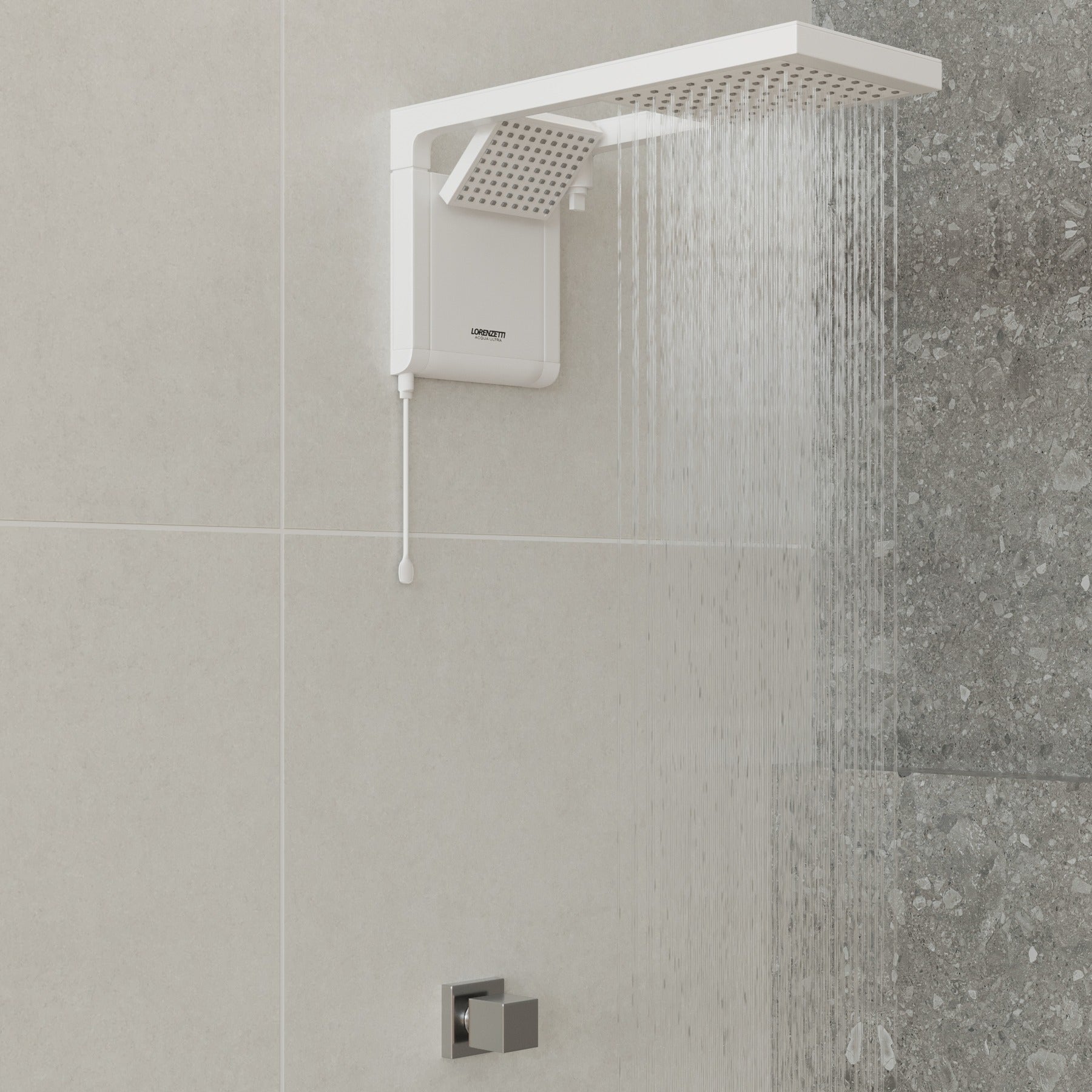 Seu espalhador grande garante um jato uniforme e relaxante, enquanto o controle eletrônico de temperatura permite ajustes precisos durante o uso. O acabamento em branco com formato quadrado dá um toque moderno ao banheiro.