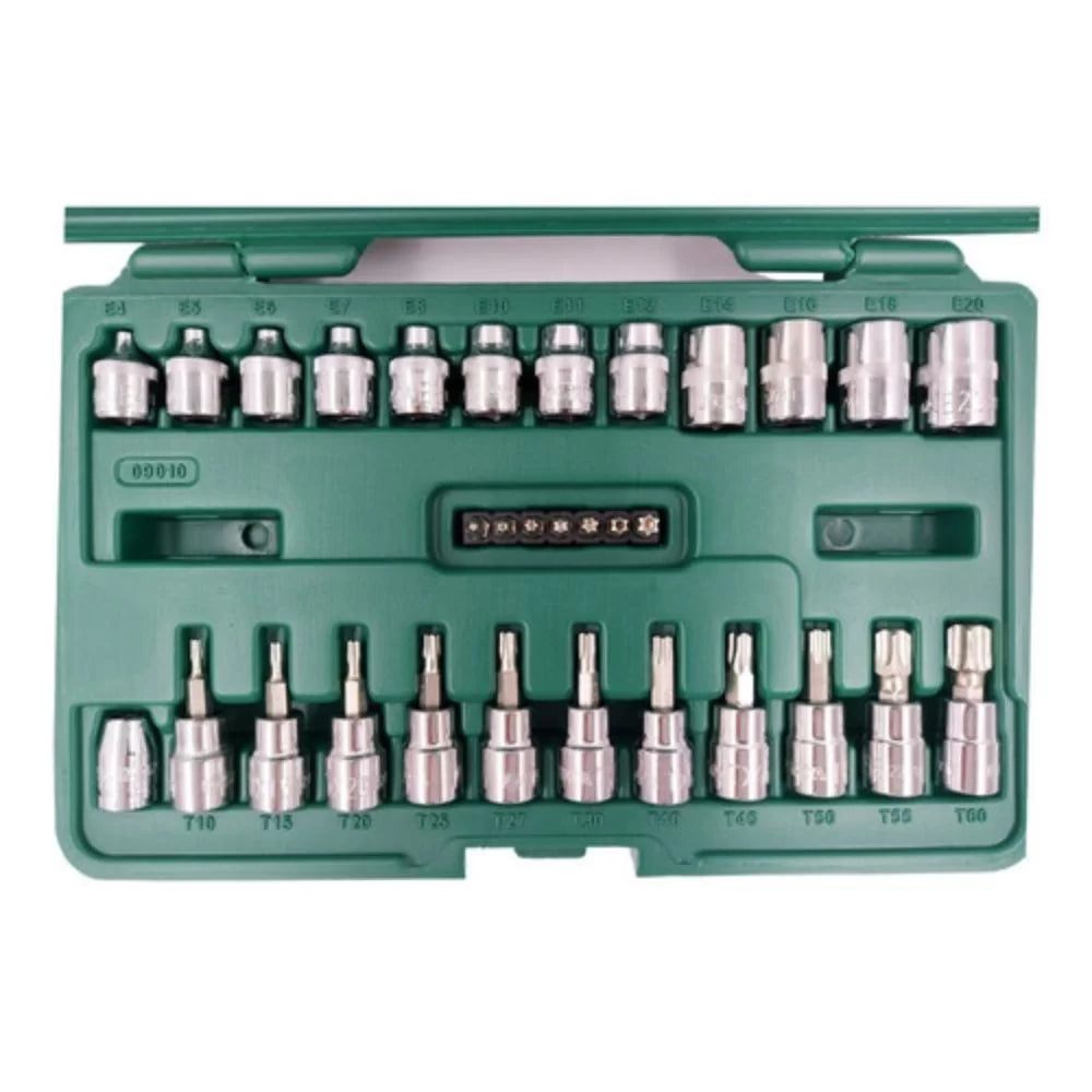Jogo de Soquetes e Chaves E-Torx – 3/8 e 1/4 pol. – 35 Peças – SATA-ST09010SJ