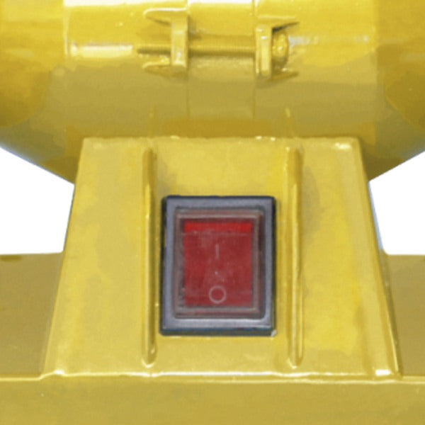 Possui estrutura compacta, base estável com pés emborrachados para absorção de vibração e carenagem metálica resistente que garante maior durabilidade e proteção. Acompanha dois rebolos de 6 polegadas, além de protetores de faísca e apoios ajustáveis que proporcionam segurança e precisão durante o uso.