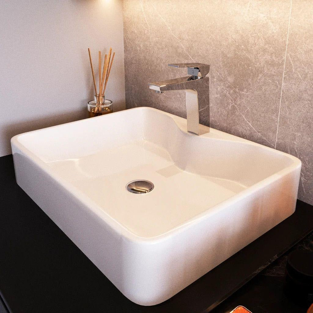 Pia Banheiro Cuba Sobrepor Louça Cerâmica Quadrada 40Cm